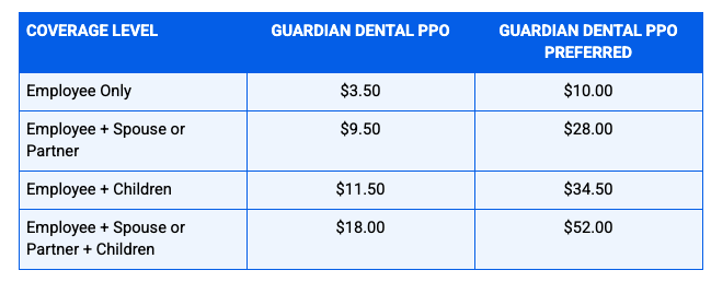 Samsara offers two dental plan options: the Guardian Dental PPO Plan and the Guardian Dental PPO Preferred Plan. Both plans allow you to visit the provider of your choice whenever you seek care, but your out-of-pocket costs are lower when you visit a provider in each plan’s network. The annual maximum benefit and the lifetime maximum orthodontia benefit is higher under the PPO Preferred Plan, which also covers adult orthodontia.