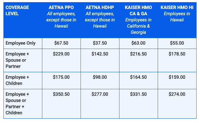 Aetna High Deductible Health Plan (HDHP)–Available to all employees, except those in Hawaii